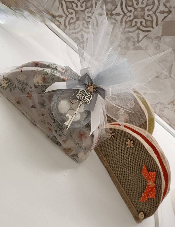 Altra proposta idea Bomboniera Handmade, completa di confezione e confetti,semplice naturale ecologico ed economico!