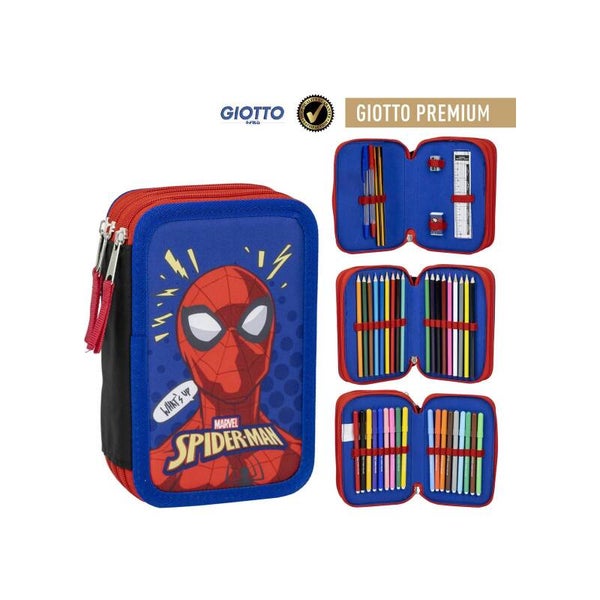 L'astuccio e copleto di colori a spirito e matita, righello, gomma,temperino,penne e matite.
