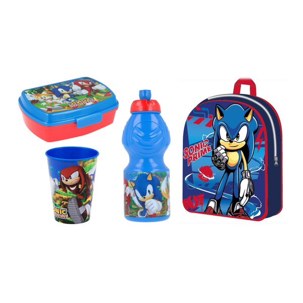 Kit scuola con zainetto asilo + portamerenda + borraccia + bicchiere - Stitch, Sonic,Minnie e Frozen girl e boy