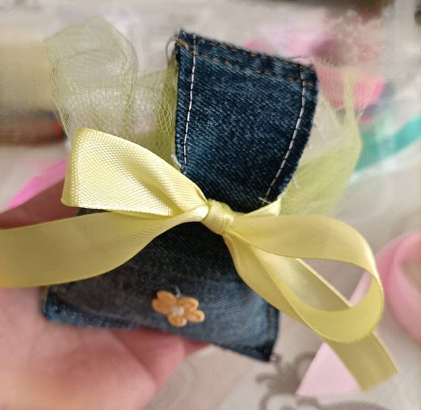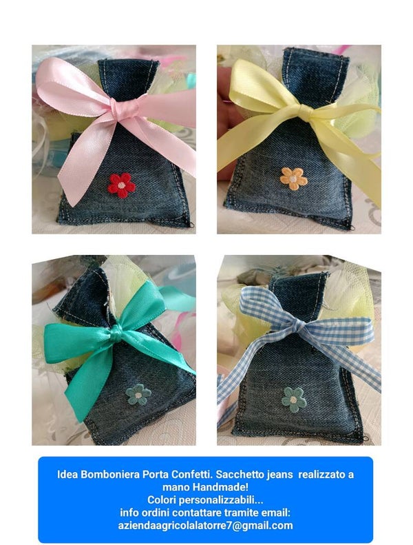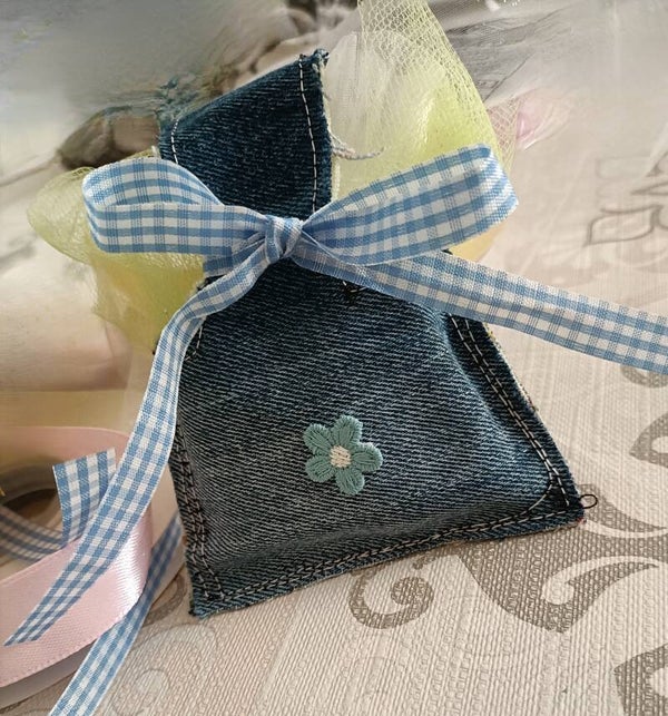 Sacchettino porta confetti in jeans Completamente realizzato a mano.