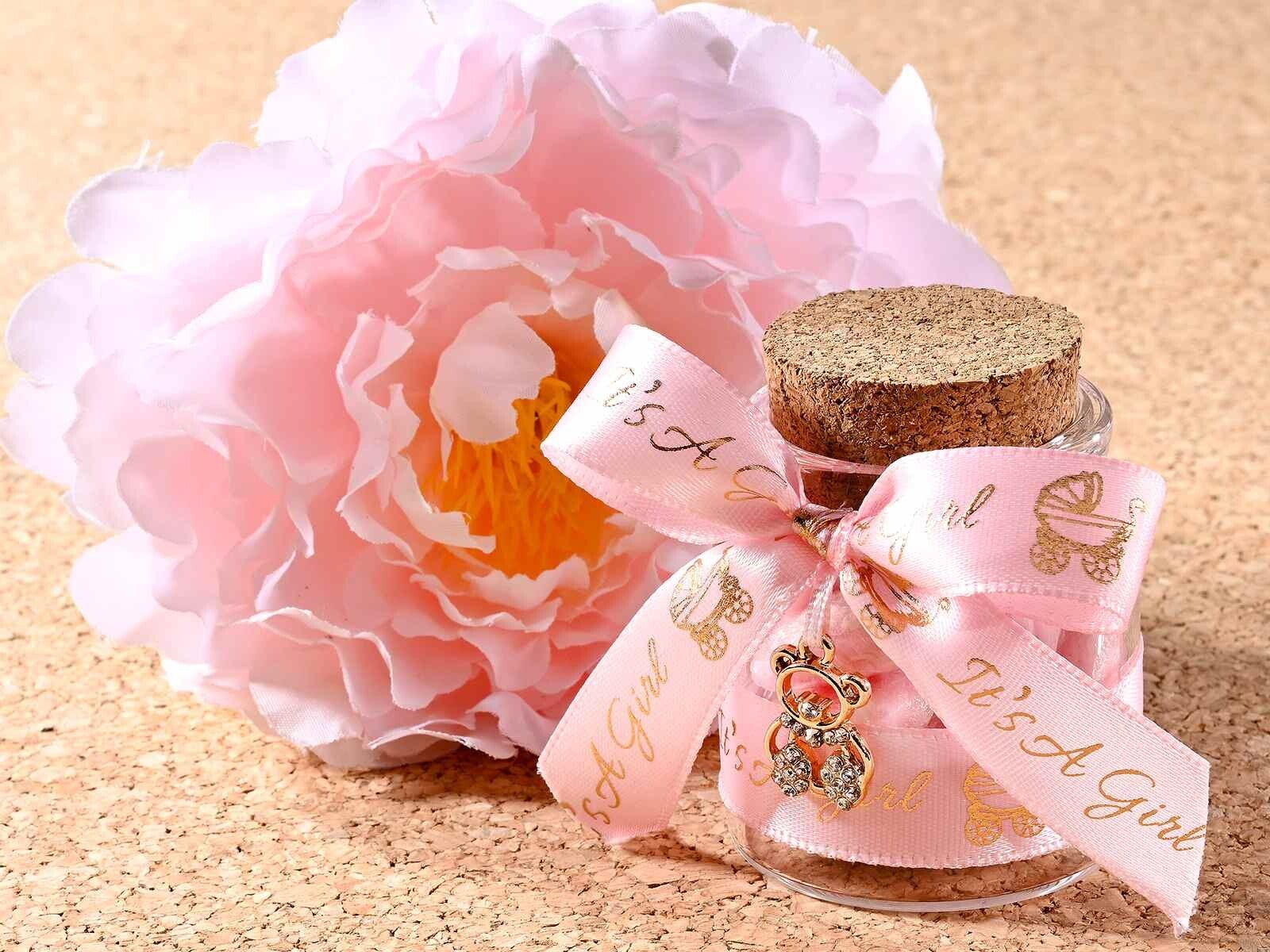 20x Provetta portaconfetti con fiocco azzurro o rosa e pendente orsetto.