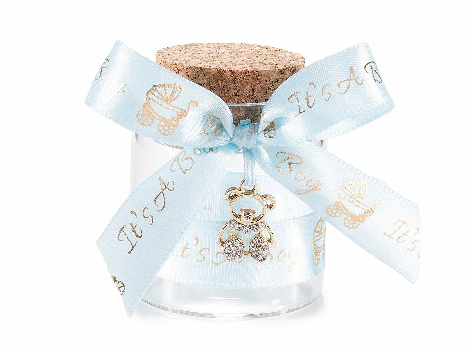 Set 20 Provette portaconfetti bomboniera bimbo/a con fiocco azzurro o rosa con scritta It's a Boy/Girl e pendente in metallo a forma di orsetto ideale come bomboniera nascita, battesimo o baby shower.