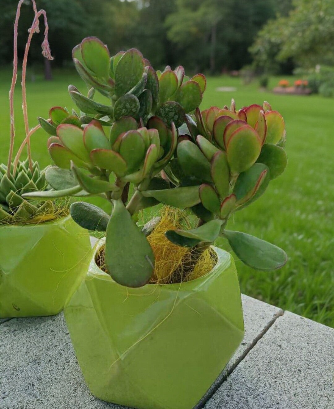 Pianta grassa succulenta vaso 13 Albero di Giada o Echeveria Miranda con Vaso ceramica Caspo' colore verde forma "Diamante".